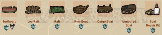 ③木船:耐久250,速度6,有船上装备栏,需要一本