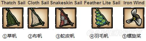 ③蛇皮帆:耐久4天,增加船速25%,需要二本