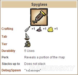②超级望远镜:同样可使用五次,显示半径是普通望远镜的两倍,视野范围是普通望远镜的四倍