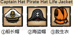 ①船长帽:耐久两天,降低行船时的自然损耗速度一倍。