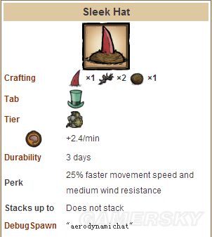 耐久三天,除了增加25%移速和2.4san/mind的精神回复以外,还有中度的防风效果