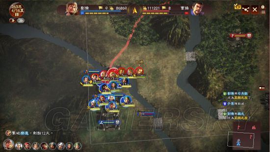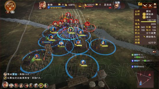 群减士气归0对方处于崩溃状态无法释放战法无法操作 往往采配够了是弓兵(夏侯渊神弓)先手,因为他没得选择。其次圈得越多崩溃越多对己方部队更无任何额外战损 何况输出还是3~4倍,奋战弓肆无忌惮。
