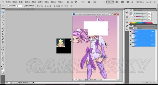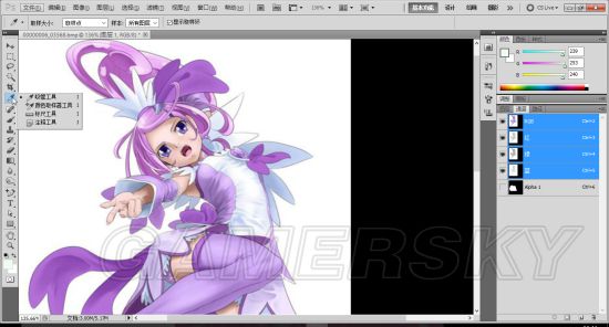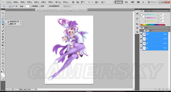 随后就要用到一件工具,那就是第一张图片左侧显示出来的魔棒工具。