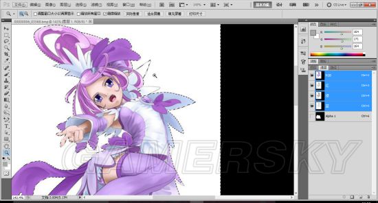 这里就要用到一开始说到的魔棒了。像一开始说的那样使用。在这里我们能看到人物图其实并没有全部在脱离虚线包围,比如图中角色脑袋右边的那两个角。