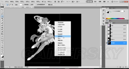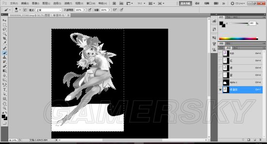 而后可以使用键盘上的delete键,也可以选择编辑中的清除键,记得这一系列的动作中,右边通道的蓝框一直在alpha通道上。这样图1就做好了,将右边通道中的除了这个通道和原图以外的其他各种通道或者副本删掉。就可以保存了