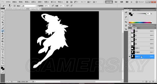 然后再点击菊花旁边那个裹在方块中的圆,就会生成alpha通道,在这之前我们要记得删掉原图的通道。到了这步我建议保存一下,最好是选择存储为,不过如果不再想做别的人物了也可以选择存储,覆盖掉原图。