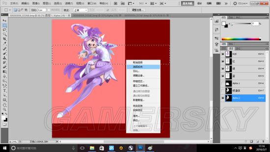 然后将折腾好的图,按照这个大小用矩形选框框住,然后50羽化。