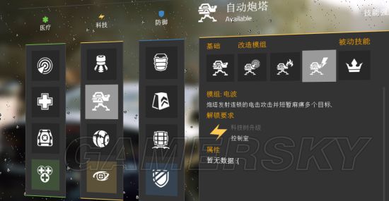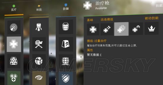 以医疗系为例 我们一开始只有脉冲 那么我们要解锁下一个技能治疗枪 就要升级医疗系统啦