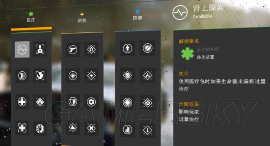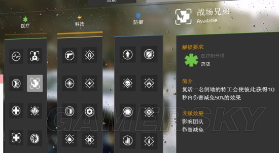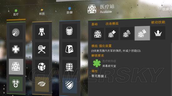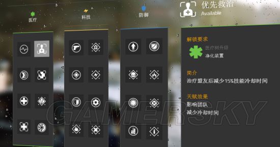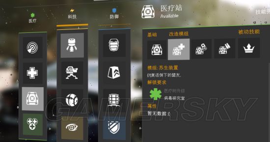 以升级“隔离区” 解锁脉冲的三个改装 解锁医疗系下一个技能 治疗枪 解锁加成中的“灾区信息”