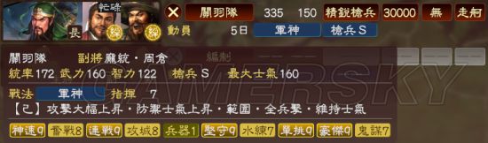 第十五队:三爷来了,说道这里不得不说下本作的三爷,不知道谁设定的5级牵绊无法再形成新的牵绊,我靠,浪费了三爷大好人才啊,只能和庞统结拜给三爷,然后这个智力1的居然有神速坚守水练3个三爷没有的技能,果断配上。