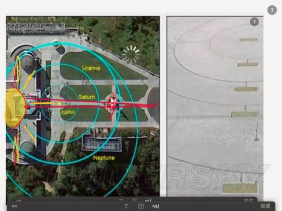 如果我们把天文台的建筑角线,与壁画路线结合起来你基本明白了一半。请注意一下“壁画”眼睛连接线直达“裂缝卵蛋”。壁画想说的的是:“卵蛋”在我的视界范围内,我盯着它看。这个“卵蛋”现在还没成熟,所以这个蛋,现在应该是完整的。那么它在哪呢? 哈哈哈