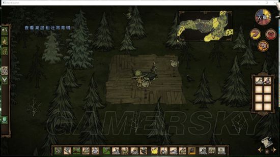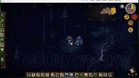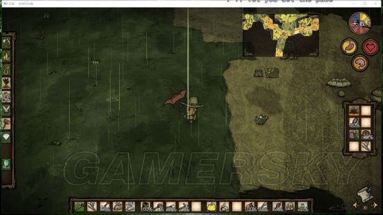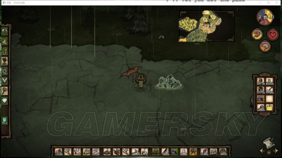 这是俺的第一天收集吃的、草、小树枝、燧石。为了防雨,我还需要收集很多的花瓣。后期有了猪皮雨伞以后多余的花瓣还可以吃了补血。不知道会不会下雨。。。希望不会下雨