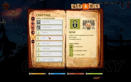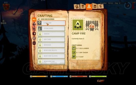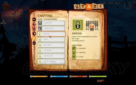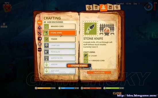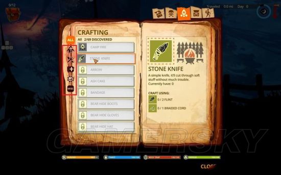 这里制作的是生存工具和防御、攻击道具。