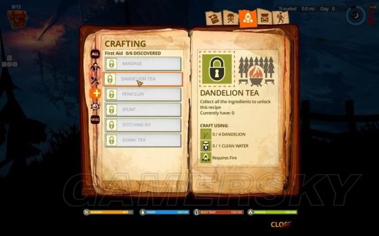 蒲公英茶则需要搜集植物和干净水并在明火上制作。