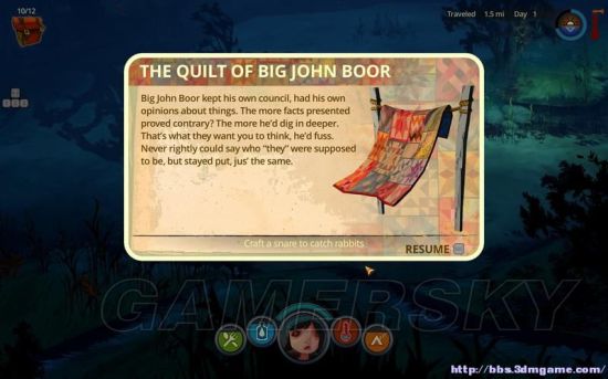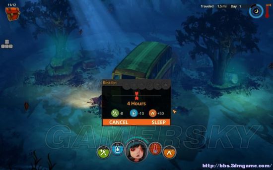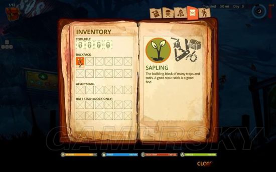 你在一个区域里探索,储备一定的补给和工具就可以继续上路了。