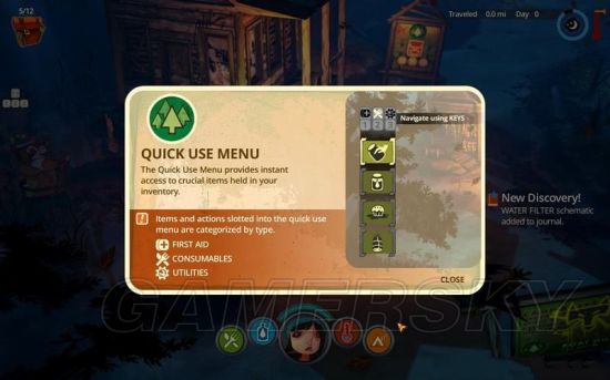 急救用品、食物和工具可以可以放入快捷栏。