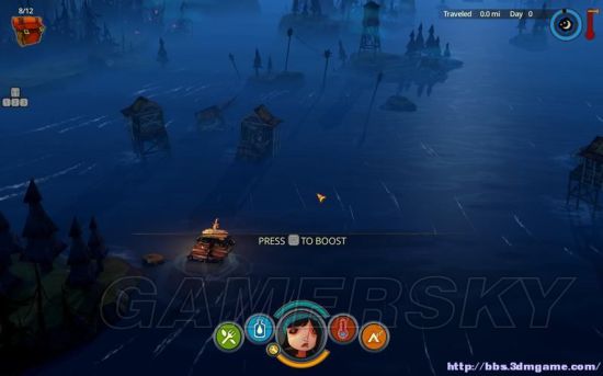 然后停靠陆地修整、收集、制造,继续踏上旅程。