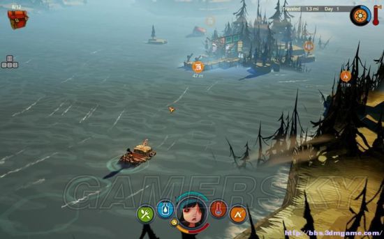 木筏在漂流时除了躲开障碍和寻找停靠点外还可以进行拾取。