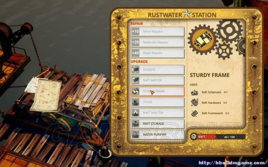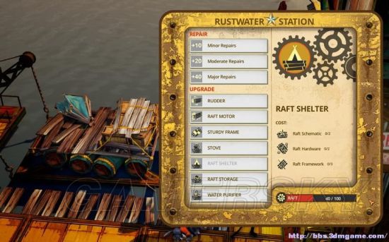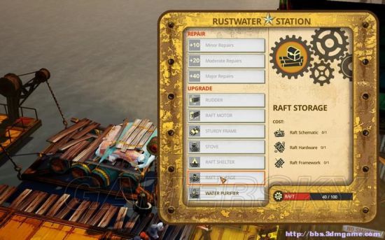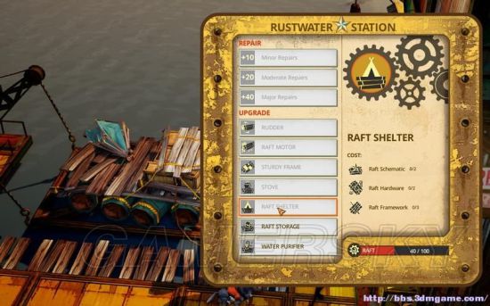 升级项目都是消耗raft schematic(木筏蓝图)、 hardware(五金硬件)、 framework(木筏结构材料)。
