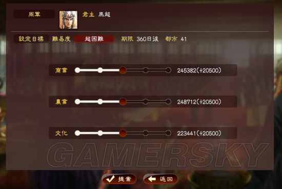 这个评定任务是要你整个势力(城不限)增加如下商业,农业,文化的数值,