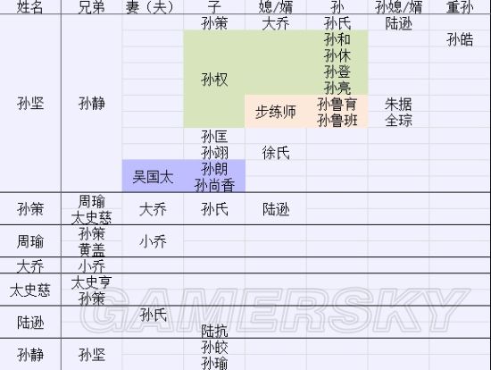 3. 颜色框方便一一对应(如卞氏与曹丕曹植曹彰曹熊有亲子绊,与曹昂曹冲曹节曹宇没有),下同。