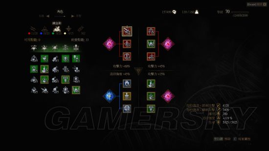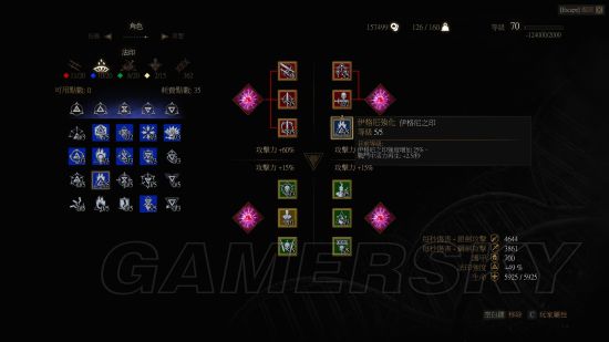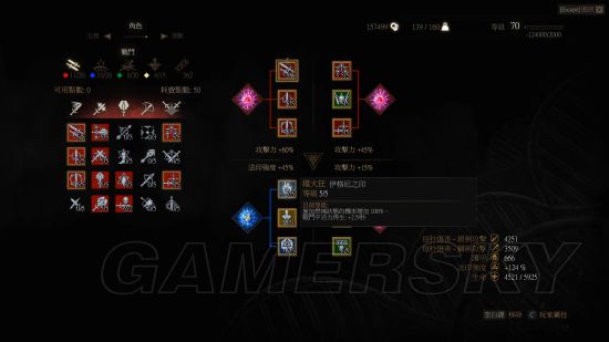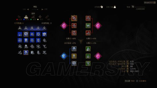 这样肯定点的燃了。作者下了之前的纵火狂和火焰之流,换成了伊格尼强化和一个红技能。这样少了一个蓝技能法强-15%,但是伊格尼强度+25%,实际火焰伤害是增强10点了的。这也说明了+25%伊格尼强度的伊格尼强化还是挺有用的,有时候想突破阈值还真就缺这25%。省出来一个红技能,作者就把轻击第一个+25%轻击伤害放上了。不过这也就是极限了,作者本想再下一个大蓝换成大红(333火伤),但是那就点不燃了。