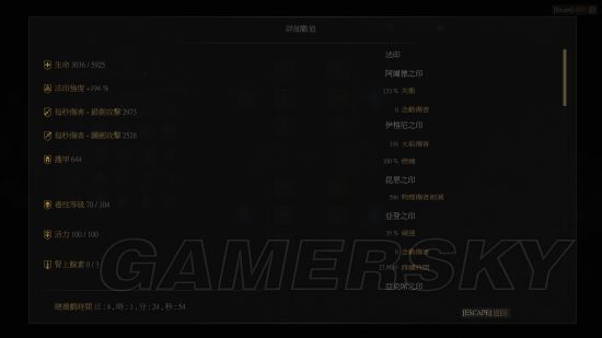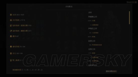在不求绝对精准的情况下,我们暂将194%定为阈值法强,但是由于法强的面板数值是各个单一法印强度的叠加,实际对火印来说并不准确,我们来看下单独的伊格尼属性:
