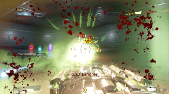 在doom4中,虽然是以第一人称FPS射击为主,但在doom4中,一些可拾取物自带的围绕效果倒是有些似魔法,而doom4中被击中,血液飞溅的效果会展现在屏幕上,游戏内敌人血液飞溅的效果其实还是比较夸张的,其精髓就在于使用电锯击中时的血液飞溅。