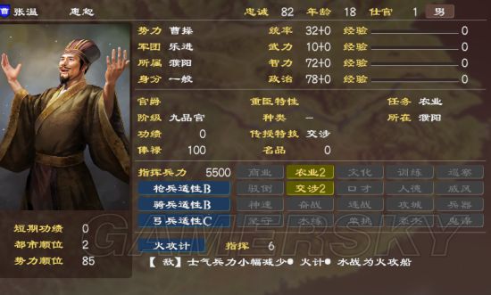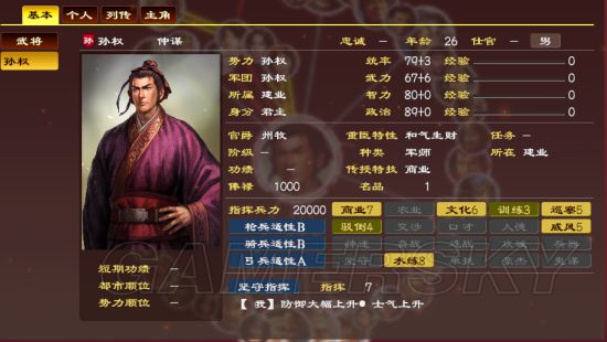 最后一张是孙权所在城市的太史慈为太守时,孙权的弓兵兵种适性等级的变化