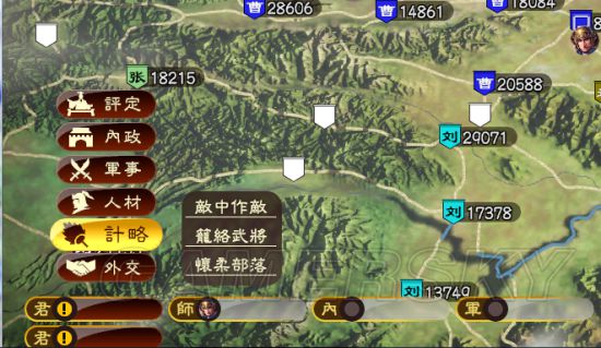 神谋鬼算——所属武将的指挥兵力和士气提高。