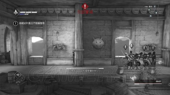 强制潜行,我没记错的话这个是这一部新加的,就是你必须保持潜行不被发现,一但被发现就同步失败。