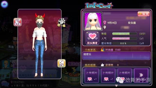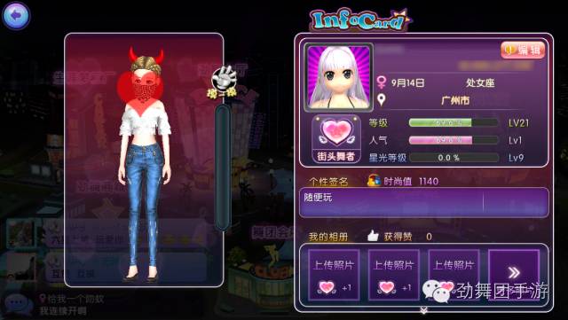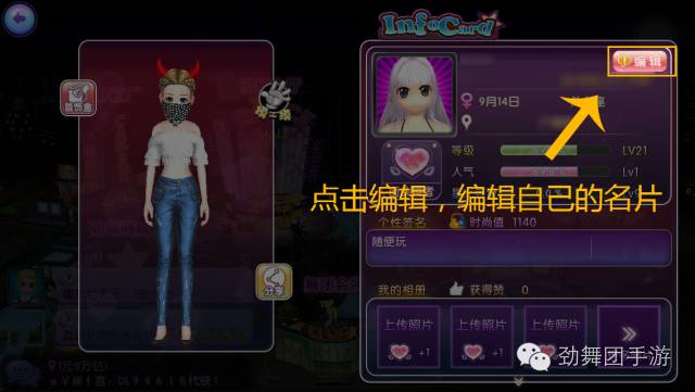名片嘛~最重要的,当然是照片啦!无图无真相!宝宝们点击名片右下方就可以上传照片了惹自己的照片被赞了还可以获得人气值呢!