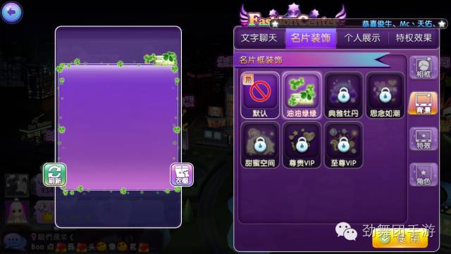如果宝宝们觉得自己的名片还不够酷炫可以进入【时尚中心】购买名片装饰哦!