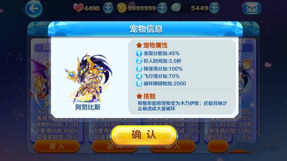 阿努比斯的技能大约10秒一次,龙卷风刮到的任意障碍全部摧毁(包括闪电怪),然后可以变出高分飞币。还有怪会有概率变成木乃伊怪,踩了也出飞币,不过这些飞币的分略低