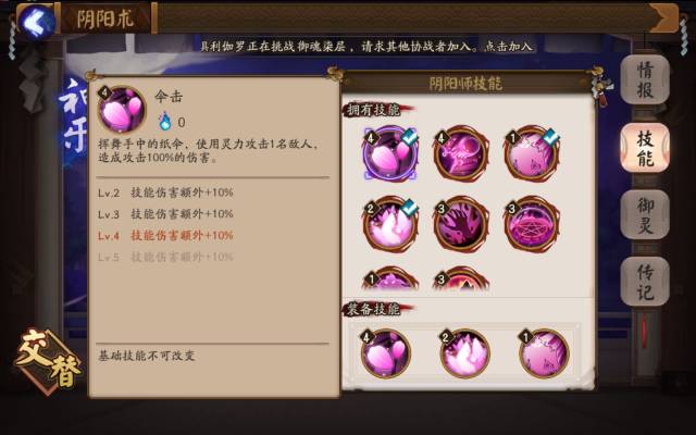 阴阳师的技能解锁/升级可以通过以下两种方式