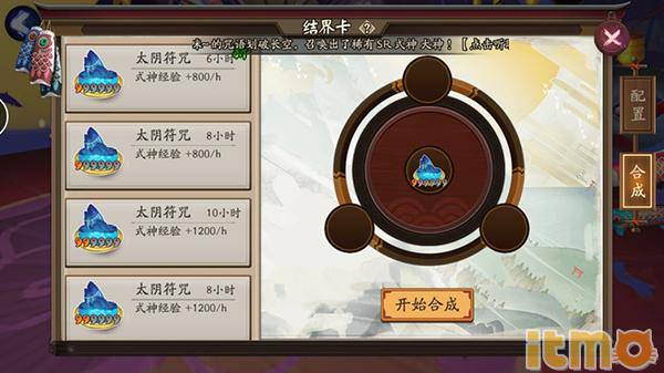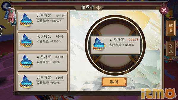 激活结界卡,为要培育的式神提供大量经验。记得点击EXP来获取经验。可以通过结界卡合成,将3张结界卡合成1张新的结界卡(结界卡合出的卡星级、种类随机,但不会比原来星级低,所以这就可以检验欧洲血统是否纯正…)