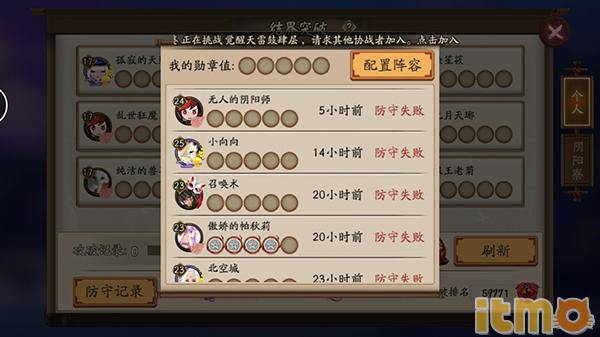 PS:防守记录是查看你防守其他玩家突破的情况汇总,如果你想设置结界防守的阵容的话,就只能加入阴阳寮之后在阴阳寮里的结界设置。