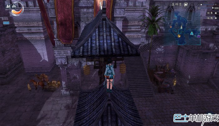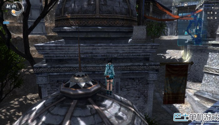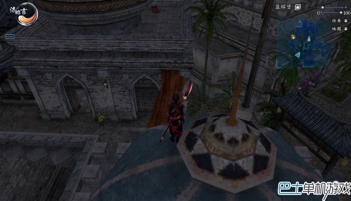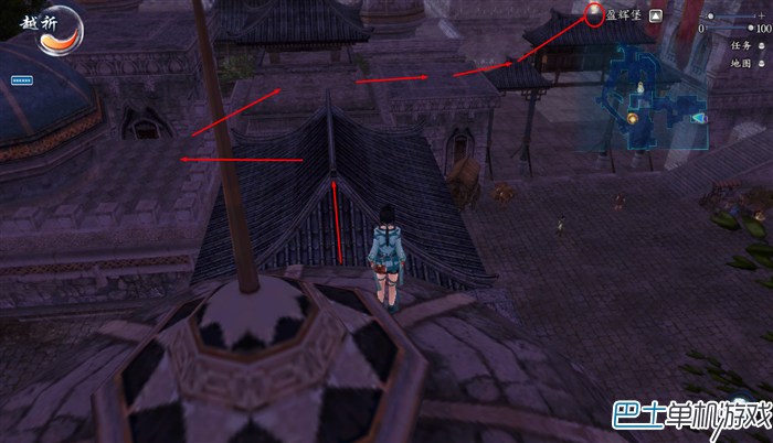 注意小地图的位置,跳上这个平台,然后跳到上图对面的房顶上,再往前跳上圆顶建筑