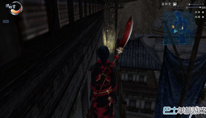 在图中位置跳上原形屋顶,沿着边缘连续空格就能跳上来