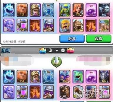 2.防守反击:防守用到的火枪,王子,紫胖子,基本防守完不会死,血量也基本保持健康,这时候,可以根据情况跟胖子,或者其他牌发动一波反击,极有可能在对方亏费的情况下,拿下一路,或者赚到很多外塔血量。