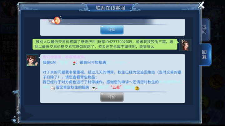 玩家发现自己被骗后,就立马上论坛求助了,经过热心小伙伴的帮助和万能的GM帮忙,最后被骗的绝技终于失而复得。