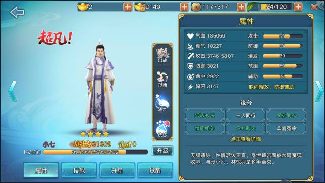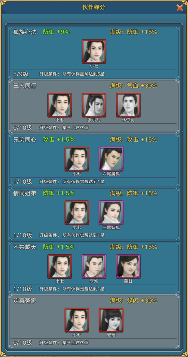 3、小七觉醒相对容易,三个需要紫色伙伴,另外一个需要碧瑶,五大属性皆可激活。