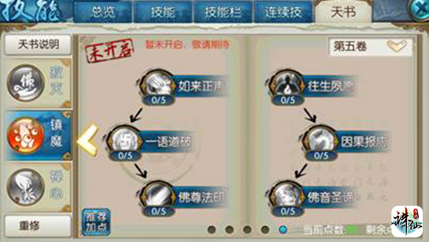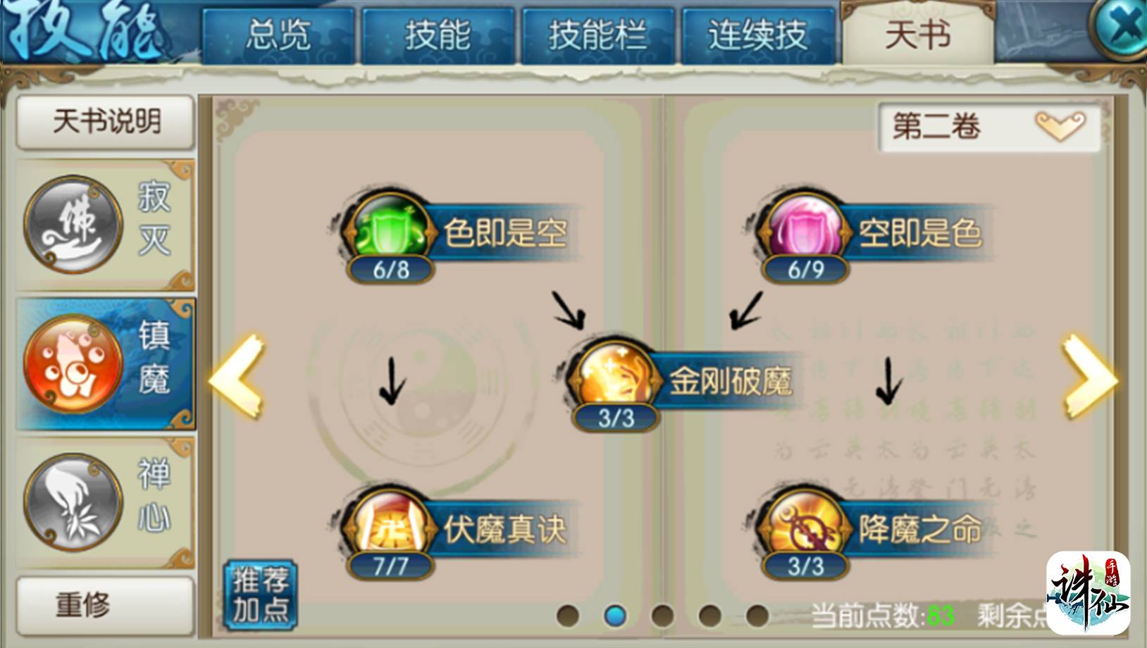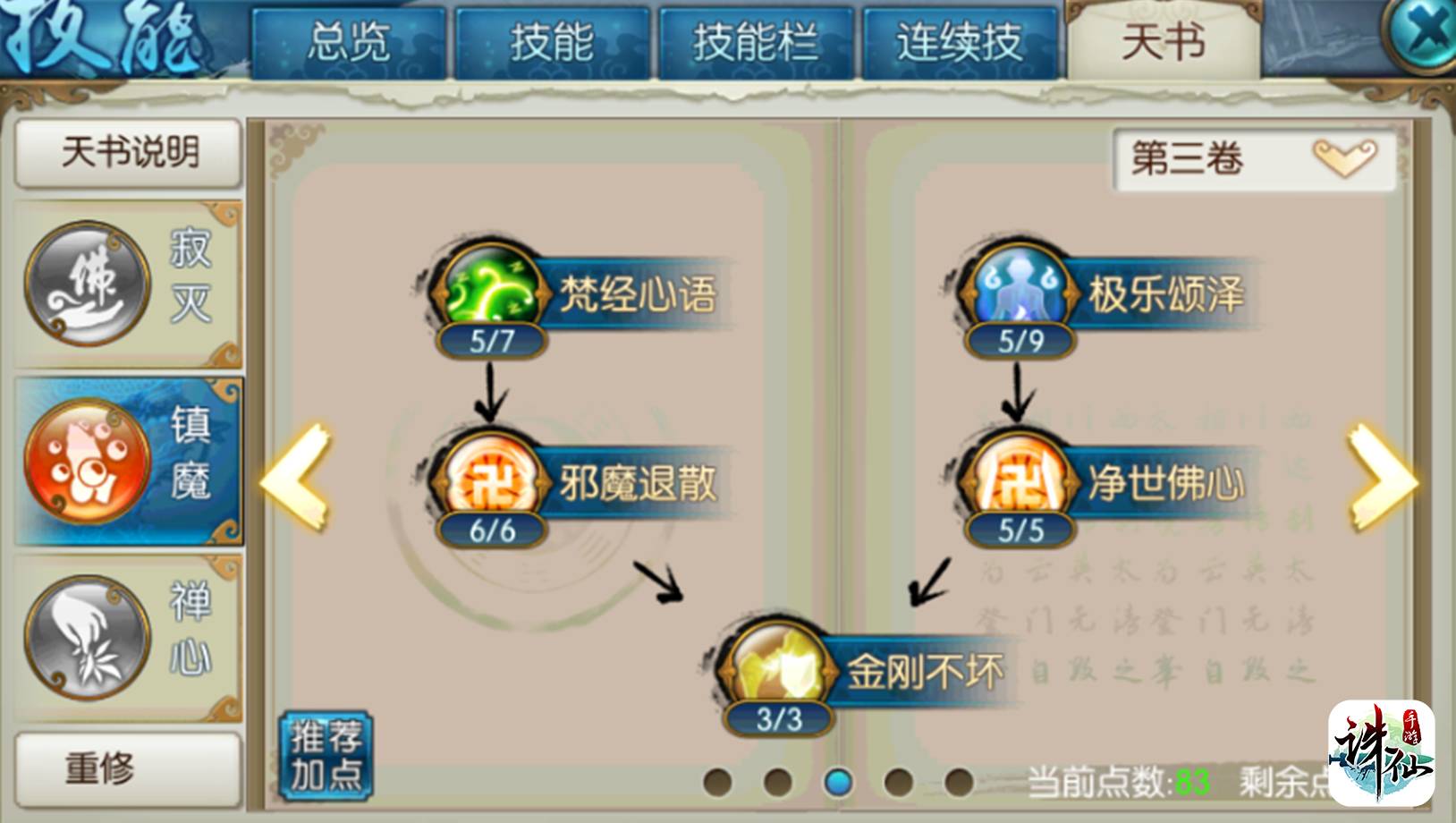 天书(镇魔)(满级86点,现版本天书第五卷未开启)(图片跟大梵通用加点差不多)