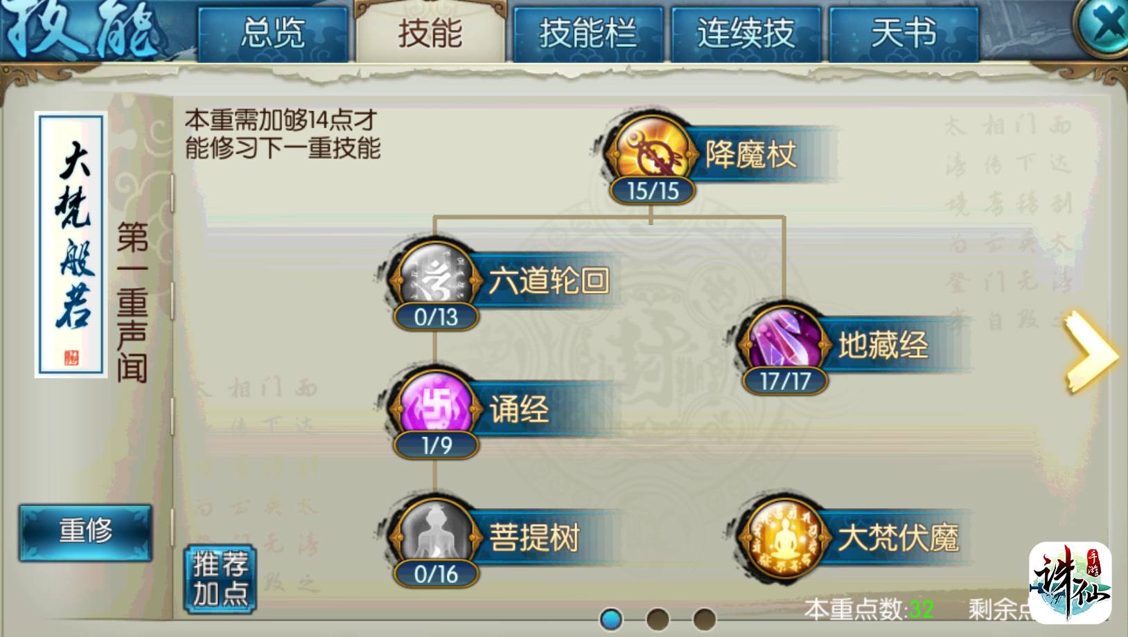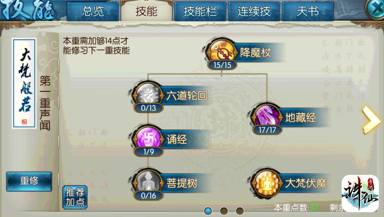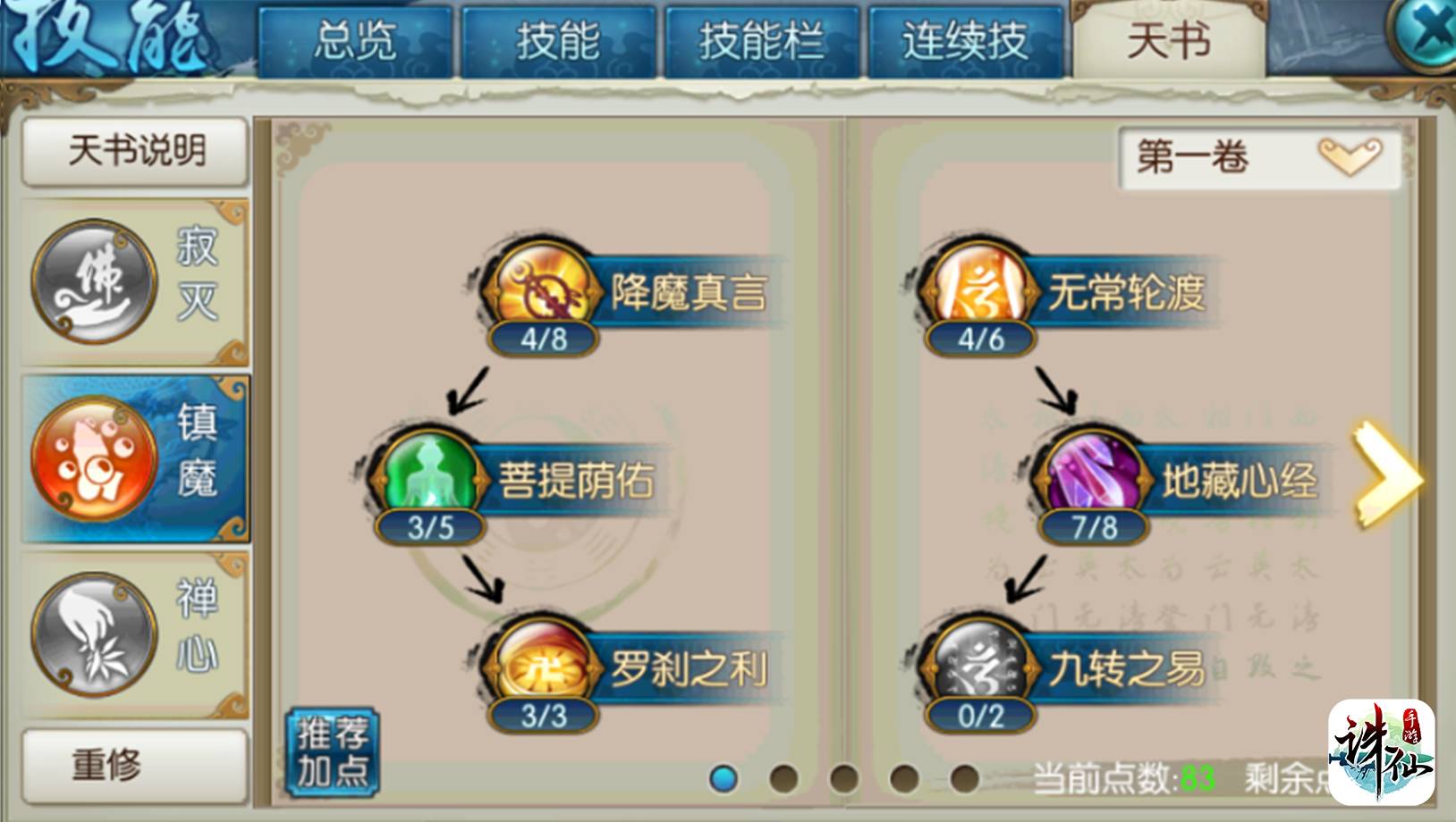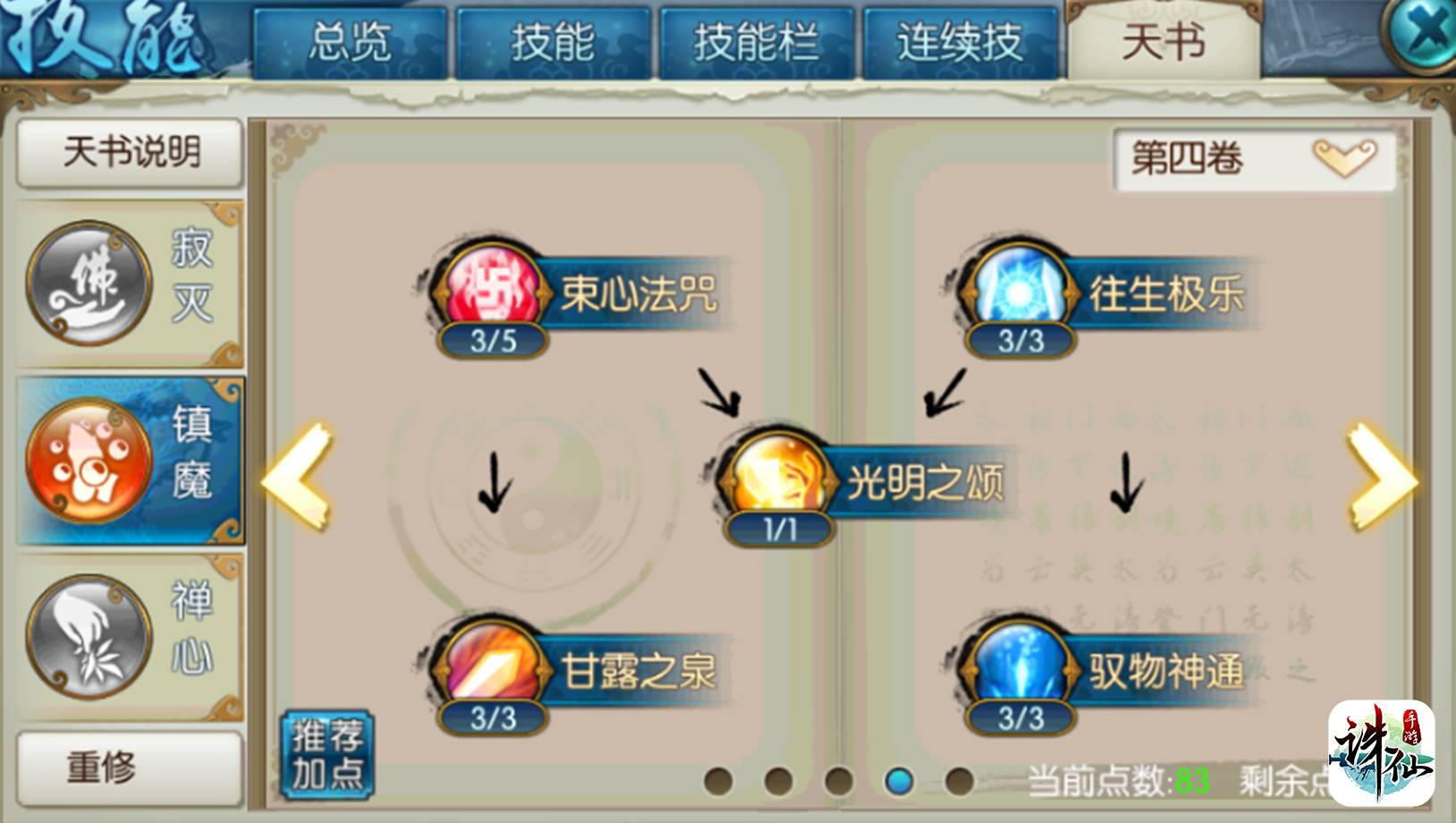 天书(镇魔)(满级86点,现版本天书第五卷未开启)(图片跟大梵通用加点差不多)