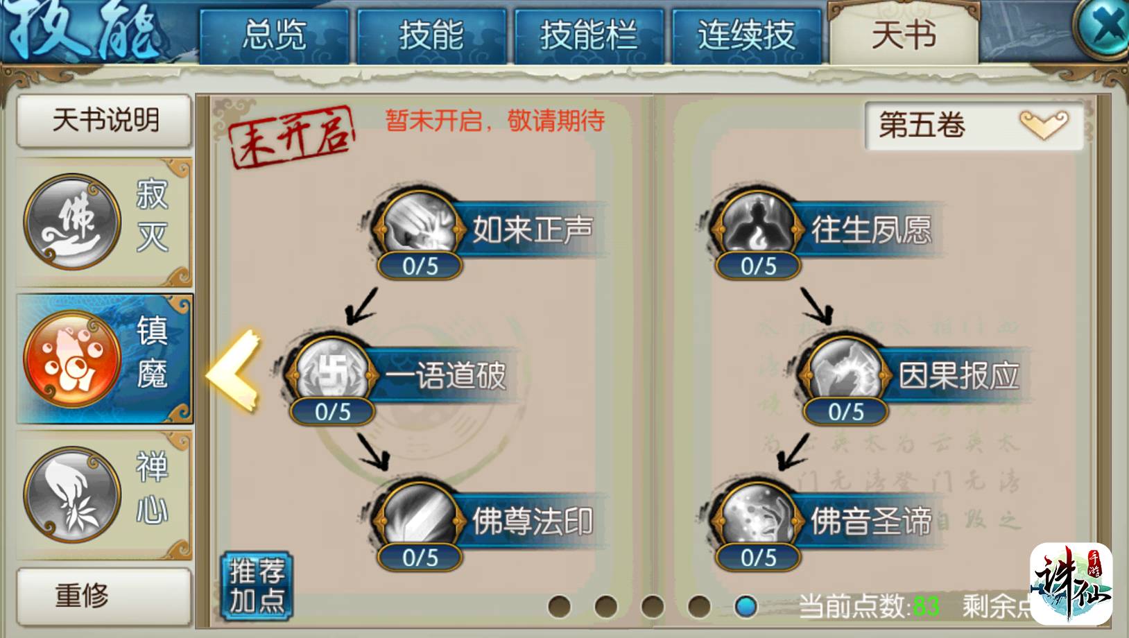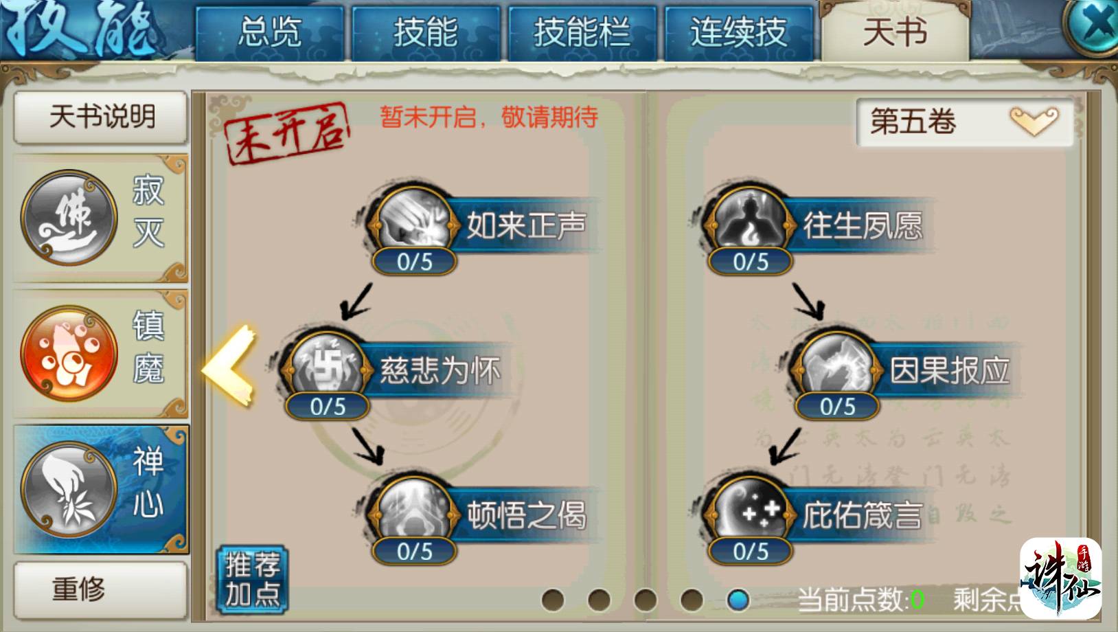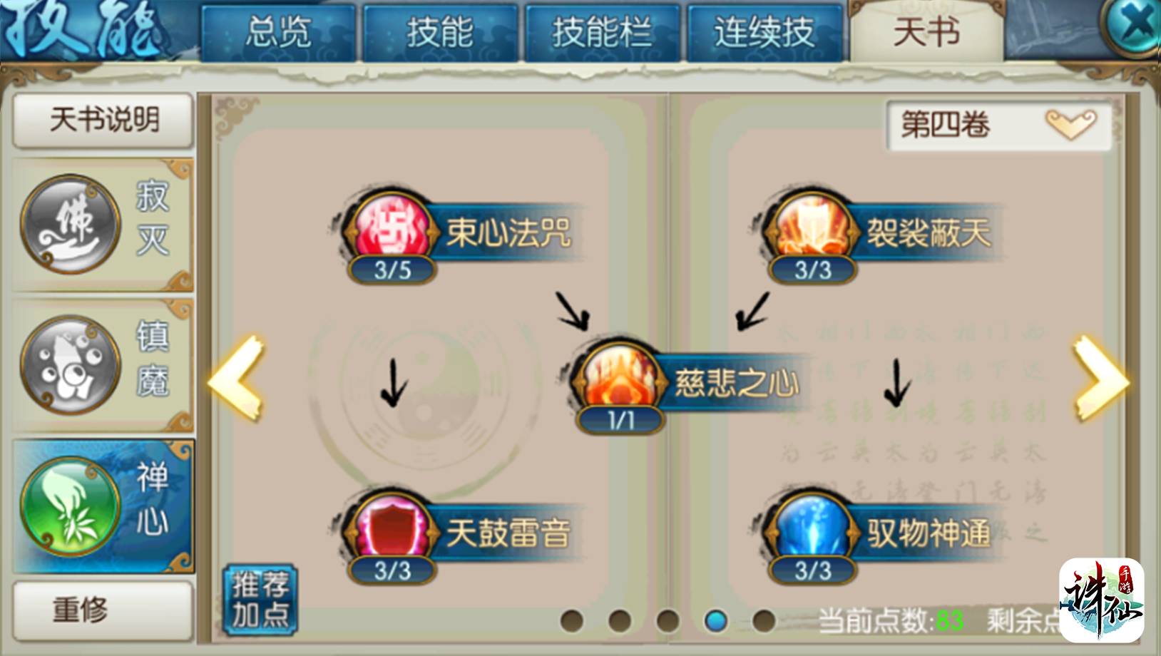 天书(禅心系)(满级86点,现版本天书第五卷未开启)