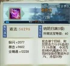 天舞宝轮:满级减命中和躲闪26.2%,加上镇魔天书减躲闪27%,超过50%的减躲闪可以让队友技能命中大幅度提高,相当于提高队友的伤害。或加上寂灭天书减命中27%,超过50%的减命中,可以让队友减少一部分伤害,相当于提高队友的防御,所以这技能也算是一个神技,但现在问题是命中和闪避这种概率性的属性太不稳定,具体也不好计算。