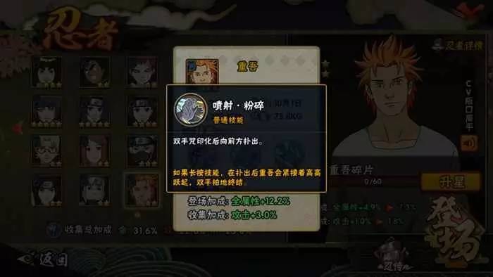 B级忍者重吾的上架大家关注的是它在决斗场地位如何,值不值得招募?首选我们得了解它的技能属性: