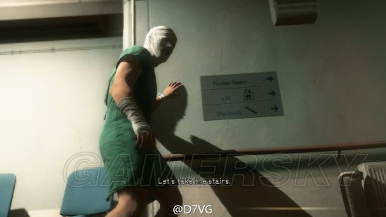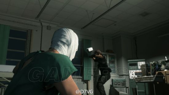 护士妹子(看起来好老...)发现BigBoss醒了,马上跑去叫医生。然而BB并没有办法沟通,只好被一针放倒