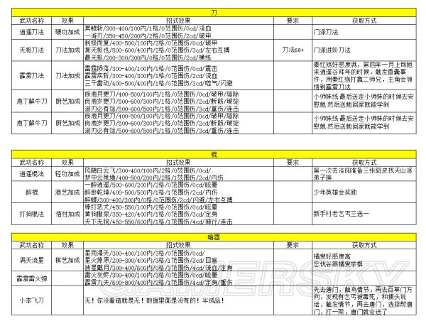 剑法方面独孤九剑伤害有问题,数据内有两个独孤九剑,一组伤害高,一组伤害低,但是玩家学的独孤九剑对应id是伤害低的一组