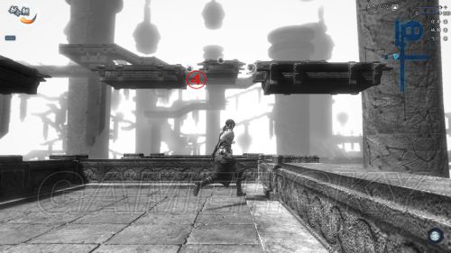 从飞跃点“11”飞下来就可以看见前方“12”处的“日晷”。这个日晷机关的运行原理很简单,下面详细介绍下。